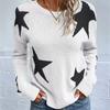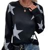 Women Sweaters Print Knit Long Sleeve Round Neck Spliced Top Pullovers Jumpers Straight Elegant Lady Casual Autumn