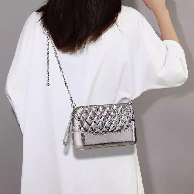 Damska Mała Torba Hobo Crossbody na Lato 2025 ze Srebrnym i Złotym Łańcuszkiem Kulkowym