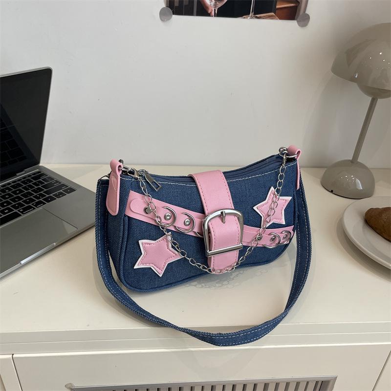 Modna jeansowa torebka na ramię z łańcuszkiem i nitami w kształcie gwiazdy dla kobiet - Jesień 2025