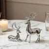 Silver Deer 2PCS Electroplated Silver Deer Figurine Handicraft Piece Resin Sculpture Christmas Center Table Decorations For
