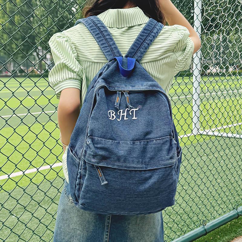 Women's Harajuku-Style Retro Washed Denim Backpack - Versatile and Simple Student Schoolbag