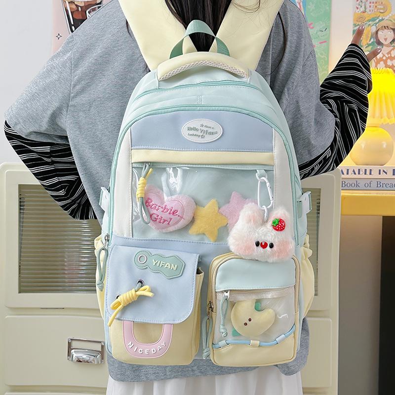 Kolorowy damski plecak szkolny Ita: Uroczy, Przestronny, Przezroczysty Plecak na Odznaki