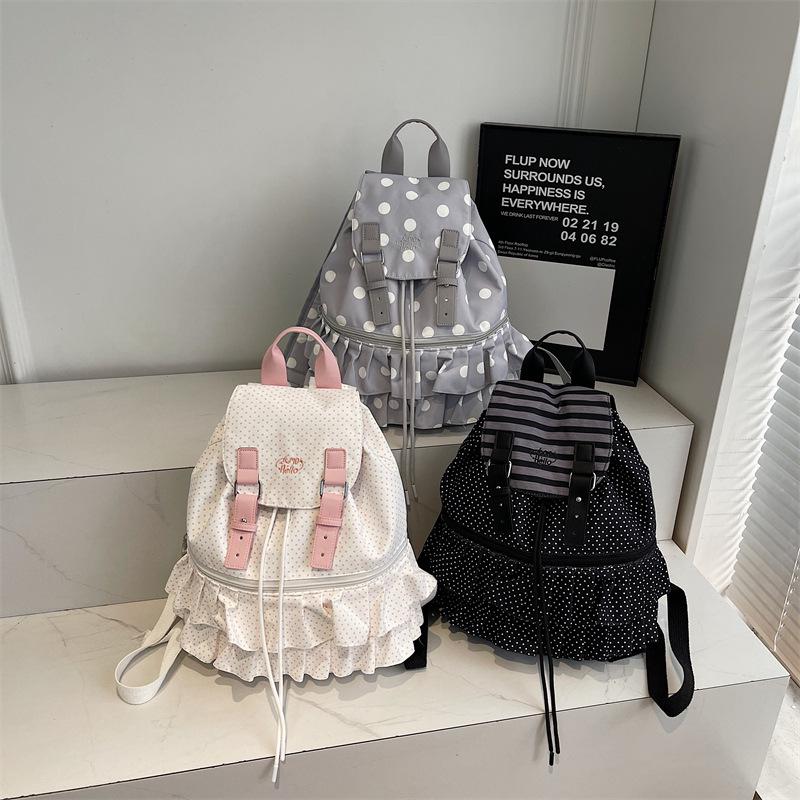 Plecak w kropki w stylu koreańskim 2025: Prosta, wszechstronna torba na ramię z klapką na uczelnię