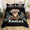 Kids Koala Duvet Cover Set, Blooming Floral Branch With A Bear Comforter Cover, Palm Tree Leaf Wildlife Cartoon Bedding Set,Twin