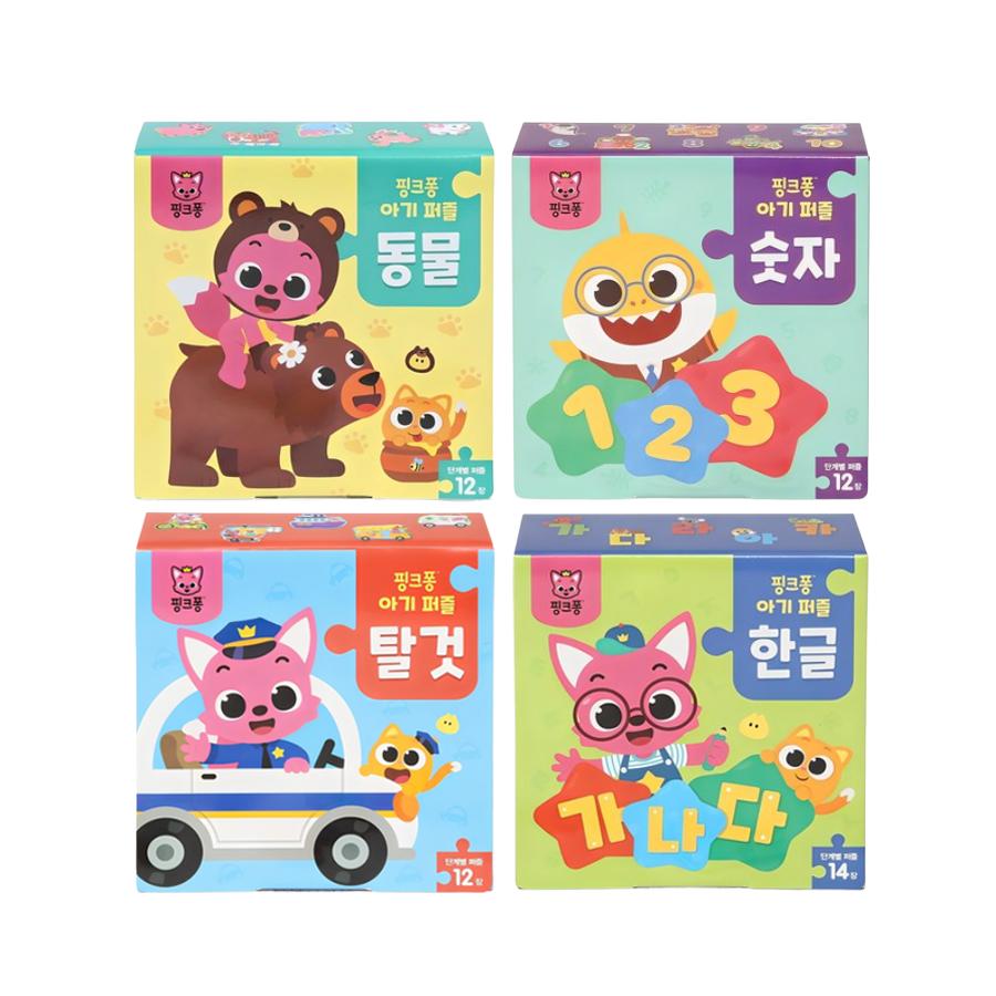 🎨 Wyprodukowano w Korei, Certyfikat KC – Puzzle dla dzieci Pinkfong (Liczby + Alfabet koreański + Zwierzęta + Pojazdy)