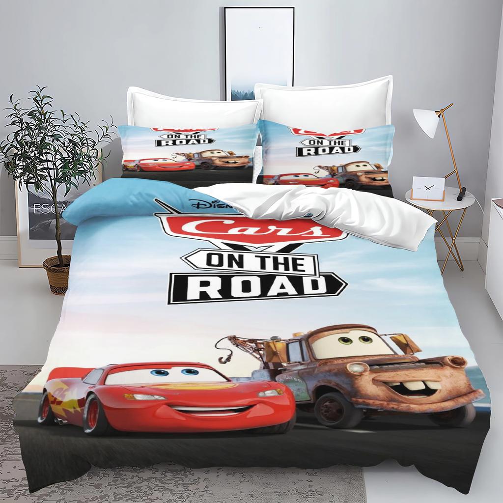 Zestaw pościeli 3D dla dzieci Lightning Mcqueen Łóżko podwójne Zestaw pościeli Słodka drukowana kreskówka Poszwa na kołdrę Poliestrowy zestaw kołdry Rozmiar Twin King