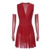 Damska sukienka do łyżwiarstwa figurowego Długie rękawiczki Bez rękawów Błyszczące cyrkonie Odkryte plecy Spódnica Trykot