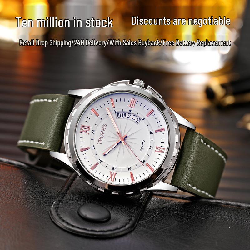 New Brand Men's Waterproof Quartz Watch with Star Pattern Dial and Fashionable Leather Strap