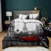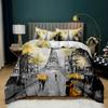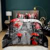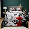 Retro Architektoniczny Poszwa na Kołdrę Kobieta w Czerwonej Sukni Gra na Skrzypcach przy Wieży Eiffla Podwójna Queen King Poliester Poszwa na Kołdrę
