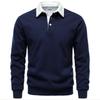 Męska koszula casualowa z klapą w jednolitym kolorze, wszechstronna, z długim rękawem, męska bluza z kapturem z grubej bawełny
