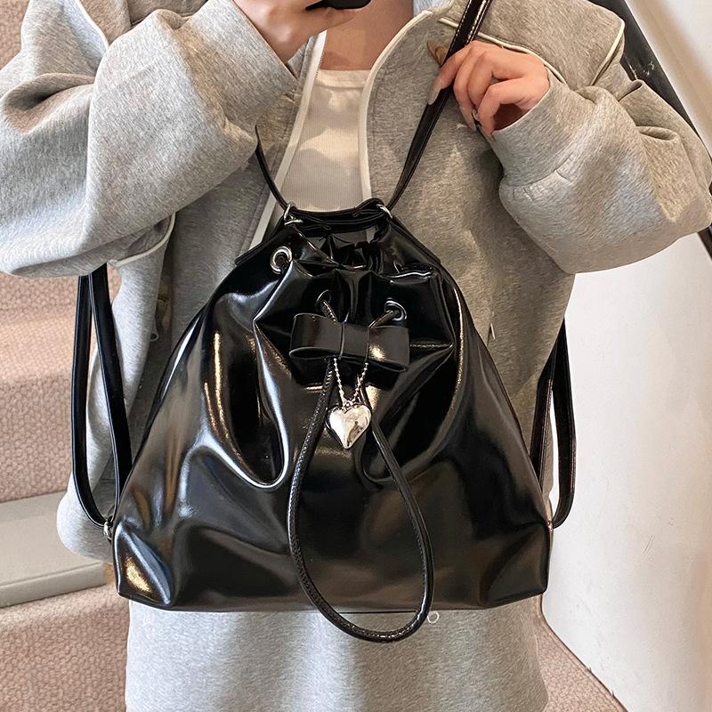 Simple retro trend premium sense pumping with pleated bucket bag casual versatile commuter solid color messenger women's bag
