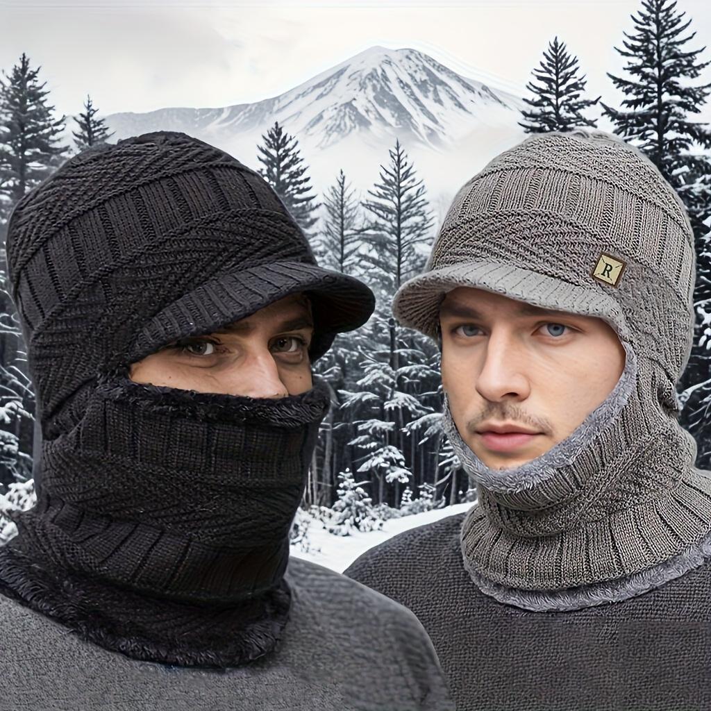 Męska dzianinowa kominiarka zakrywająca całą twarz i maska wiatroodporna termiczna zimowa czapka beanie z odpinaną osłoną twarzy, na rower, na narty, zimowe czapki dla mężczyzn