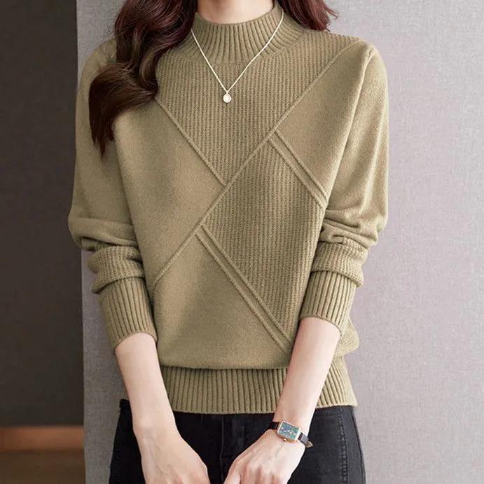 Damski Jednolity Sweter Kaszmirowy z Półwysokim Kołnierzem Jesień Zima Luźny Plus Size Dzianinowy Wełniany Sweter Casual Bluzka Bazowa