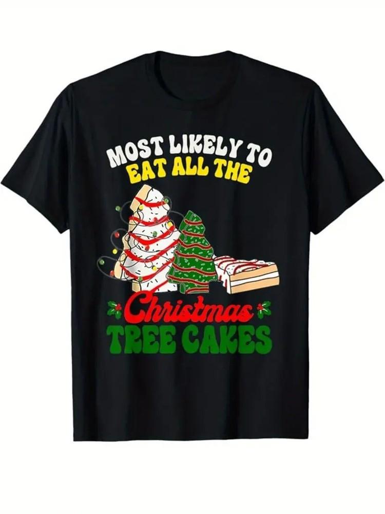 Christmas Tree Print Men's Cotton T-shirt, Graphic Tee Men's Xmas Outdoor Q6561