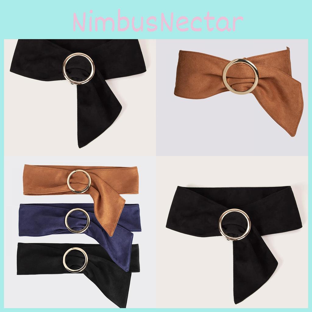 Wide Ladies Belt With Circular Buckle Suede Fashion Accessory For Looks Spring
