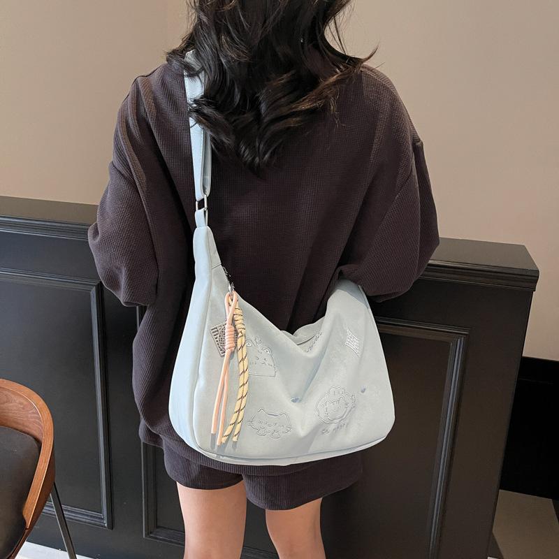 2025 new Korean version of casual niche design tote bag, student class commute fashion soft leather shoulder messenger bag