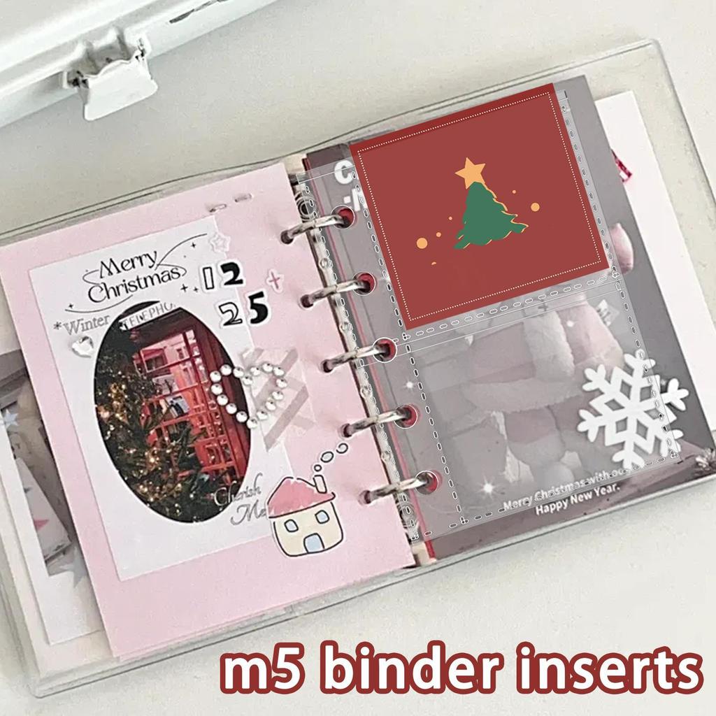 10Pcs M5 Binder Pockets 5-Ring Clear Folder Organizer Photocard Sleeve Sheets For Credit Business Card Money Protectors