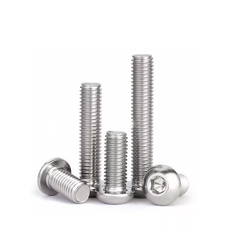 Śruby M8 201 ze stali nierdzewnej z gniazdem sześciokątnym, łbem półokrągłym, różne rodzaje