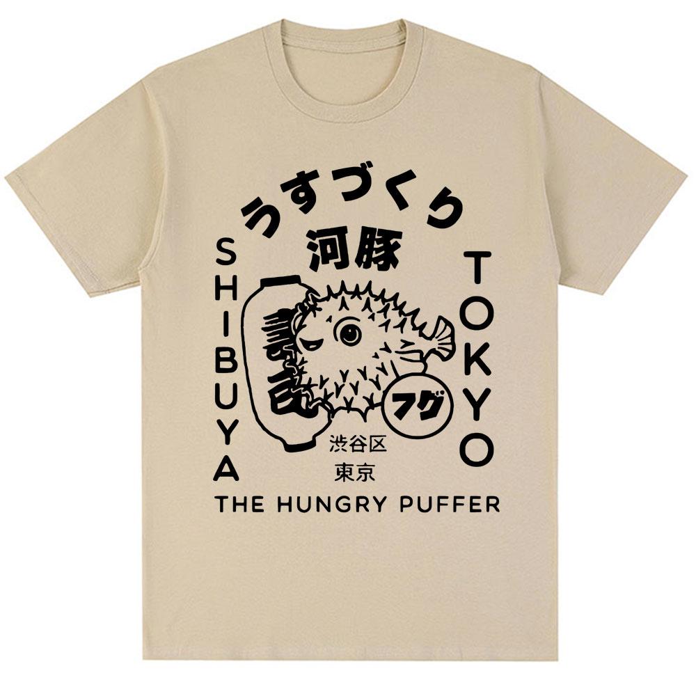 Japanese Puffer Fish Tokyo Food Graphic T Shirts Men Women Fashion Fugu Oversized T Shirt 100% Cotton Casual Oversized T-Shirt
