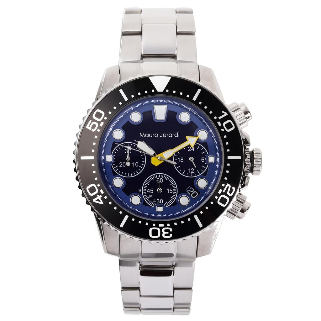 Mauro Geraldi Solar Chronograph Water Resistant to 10 MJ065 Stainless Men's Watch, ATM, (Blue, Steel)