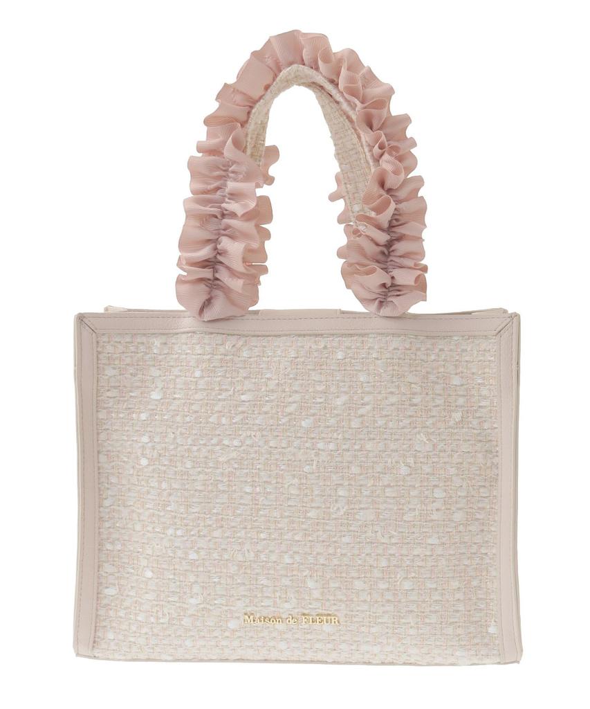 Maison de Fleur Linton Tweed Square Frill Tote 08000658300 Women's Bag, Ivory,