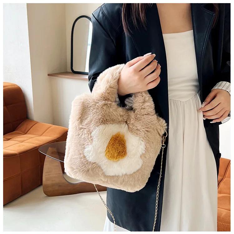 A Single-color, Simple, Thick, Fashionable and Large-capacity Women's Autumn and Winter Mirror-finished Plush Handbag