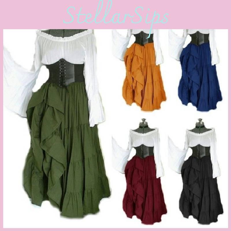 Wiek Średni Rozkloszowana Sukienka z Długim Rękawem Odkrywająca Ramiona Sznurowana w Talii Prezent Spódnica