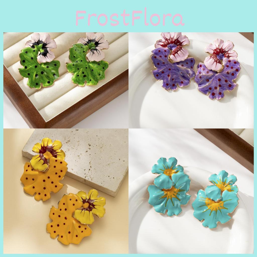 Kolczyki w stylu chic europejskim z emalią, kroplą oleju, kwiatowe i z liśćmi dla kobiet