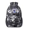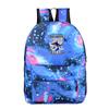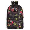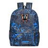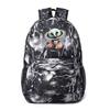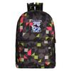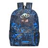 This casual backpack features durable canvas material with a breathable nylon lining, measuring approximately 12 inches high, 10 inches wide, and 4 inches deep. Its playful character pattern and chain accents add a fun touch, making it suitable for outdoor activities or school use. The curved shoulder straps ensure comfortable carry. Wipe with a damp cloth for maintenance.