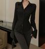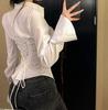 Damska bluzka z francuskimi dzwonkowymi rękawami i wiązaniem - Wyszczuplająca talię, cienki krój, idealna na wiosnę i jesień.