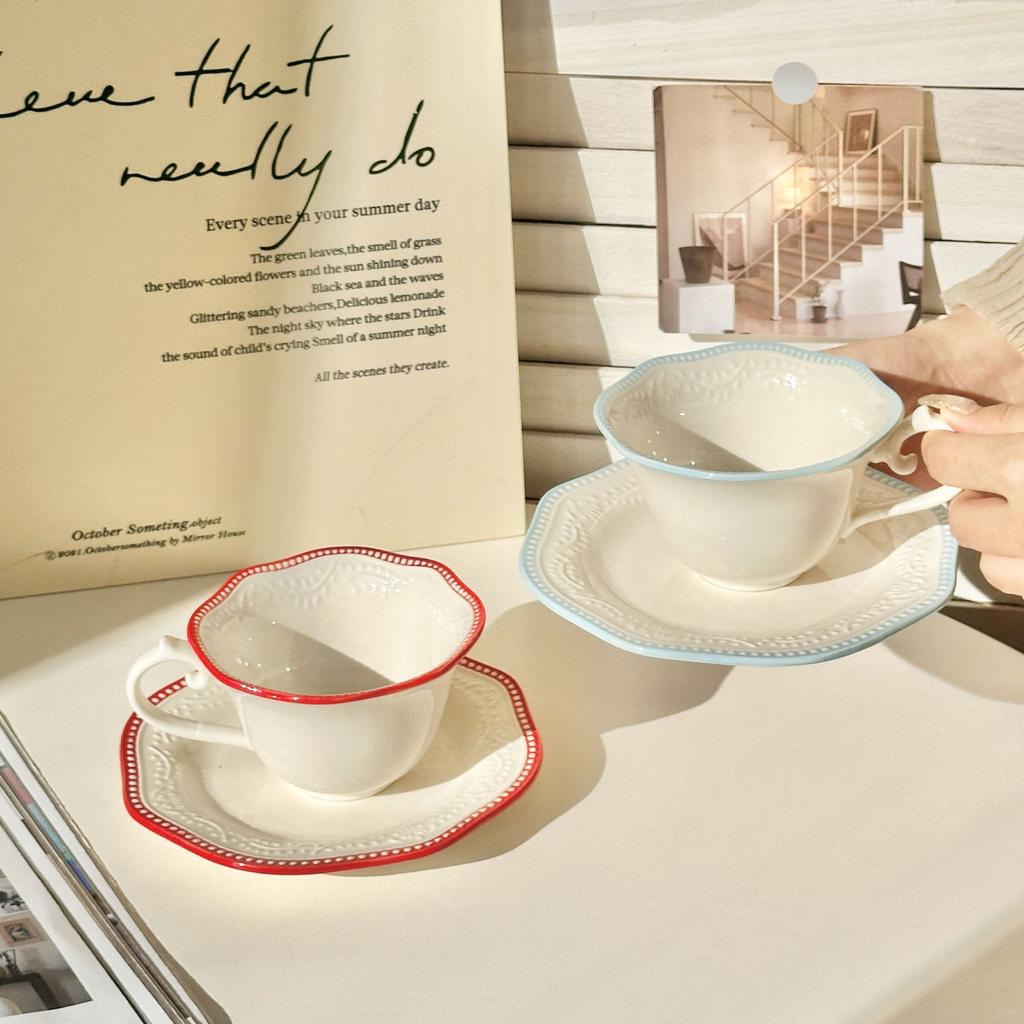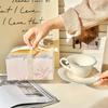 Francuska wysokiej klasy ceramiczna filiżanka do kawy i spodek w pudełku prezentowym, wysokiej wartości filiżanka z koronkowym wzorem kwiatowym, filiżanka do popołudniowej herbaty, prezent urodzinowy.