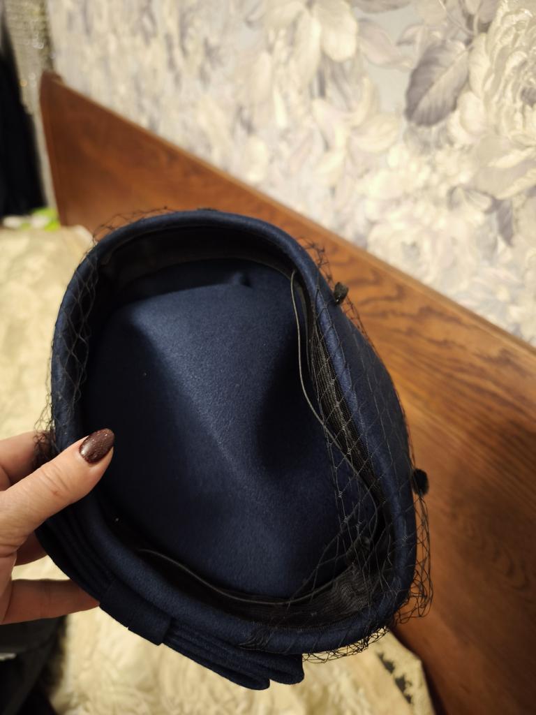 Kapelusz wełniany w jednolitym kolorze z kokardą i woalką z siateczki, kapelusz typu topper, słodka czapka stewardesy, kolacja
