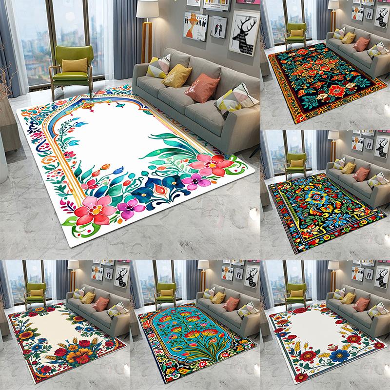 Dywan w stylu retro Bohemia z kwiatami do salonu, pod sofę, do sypialni, gabinetu, kuchni, mata pod drzwi wejściowe, antypoślizgowy, luksusowy dywan do dekoracji domu