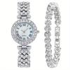 2pcs Luxury Women Rhinestone Rose Gold Watch Fashion Ladies Quartz Diamond Wristwatch Elegant Female Bracelet Watches Set Gift