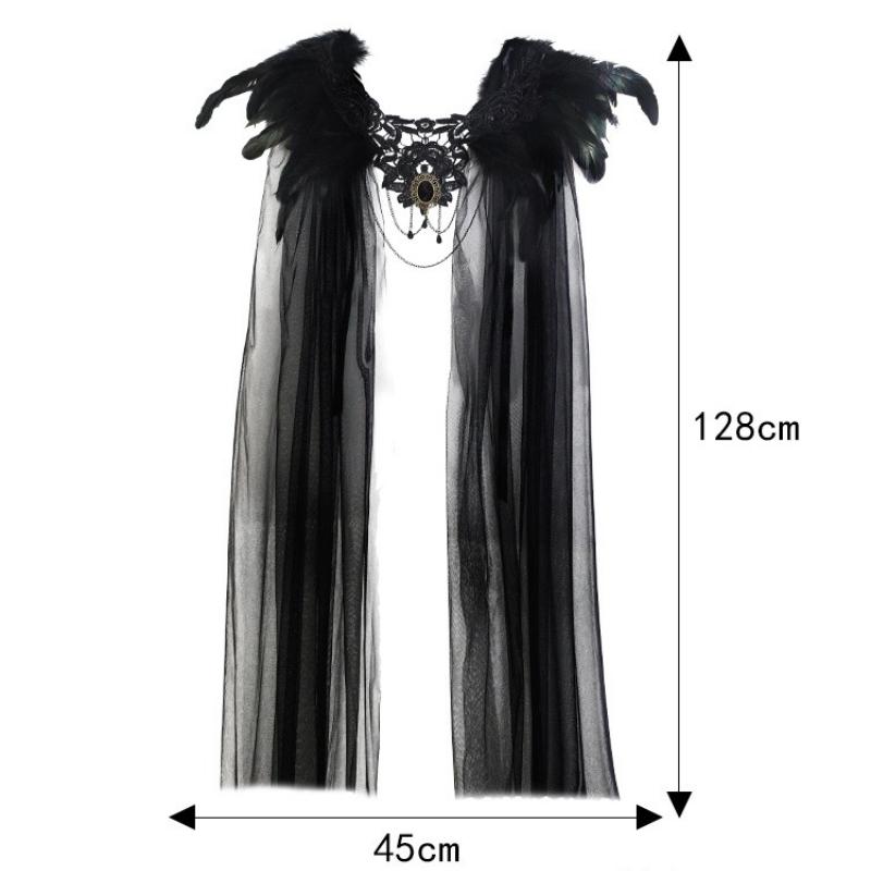 Halloween Black Feather Cloak Mesh Cloak Mid Length Dress for Stage and Performance Costumes Halloween Costume Decoration