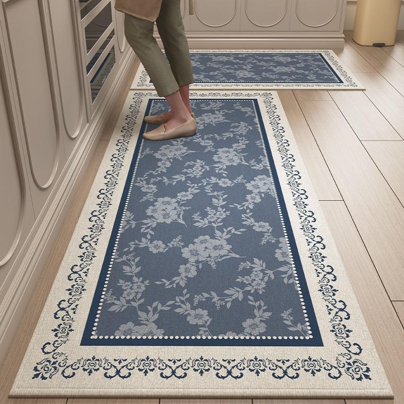 Carpet for Kitchen Floor Mat Blue Floral Carpets Non-slip Long Rug Retro Elegant Home Decoration Rugs Alfombra De Cocina