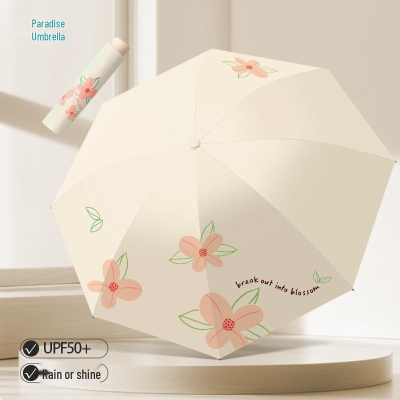 Paradise Umbrella UV Protection Women's Cartoon Sunshade: Lightweight, Portable Black Glue Folding Umbrella for Rain or Shine