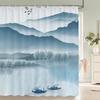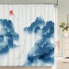 Chinese Ink Painting Landscape Bath Curtain Waterproof Shower Curtains Marble Pattern Bath Screen Printed Curtain For Bathroom