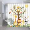 Zasłona Prysznicowa Dzikie Zwierzęta Dżungla Słoń Żyrafa Zebra Las Deszczowy Tropikalny Safari Łazienka Wystrój Domu Wodoodporny Poliester