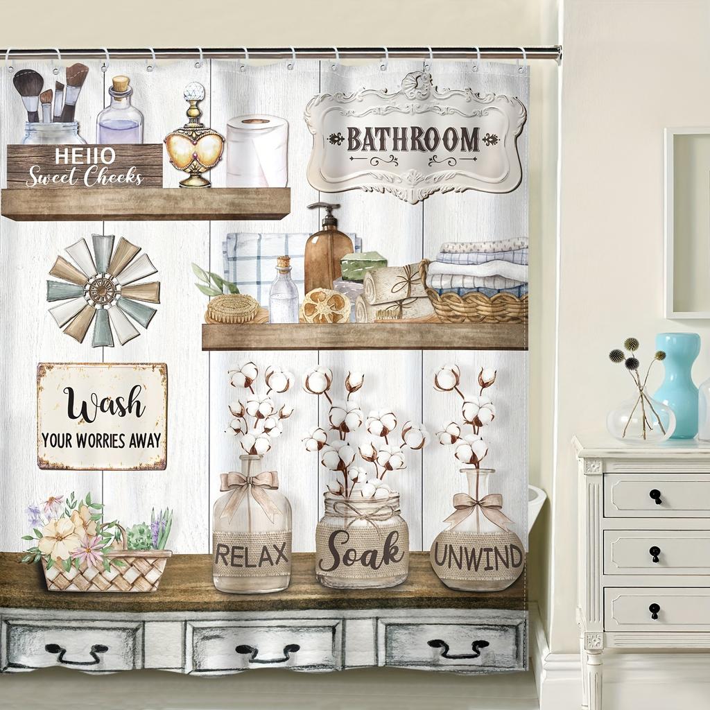 Wiejski Łazienkowy Tło Zasłony Prysznicowej Rustykalna Akwarela Drewniane Deski Łazienka Wystrój Domu Wysokiej Jakości Tkanina