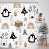 Tu Penguin Shower Curtain Winter Themed Waterproof Bathroom Decor Cute Blue Snowman Holiday Festive Fabric Backdrop For Washroom