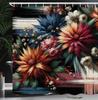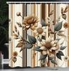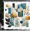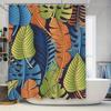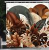 Aesthetic Boho Shower Curtain, Bold Exotic Leaves In Warm Tones, Rustic Burnt Orange Teal Blue, Fabric Set With Hooks