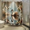 1Pc Victorian-Style Swans Shower Curtain - Romantic Pond Scene With White Swans, Lush Flowers & Greenery, Polyester Fabric