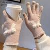 Touchscreen Knitted Gloves for Women Autumn and Winter Knitted Yarn for Warmth Five Finger Cute Students