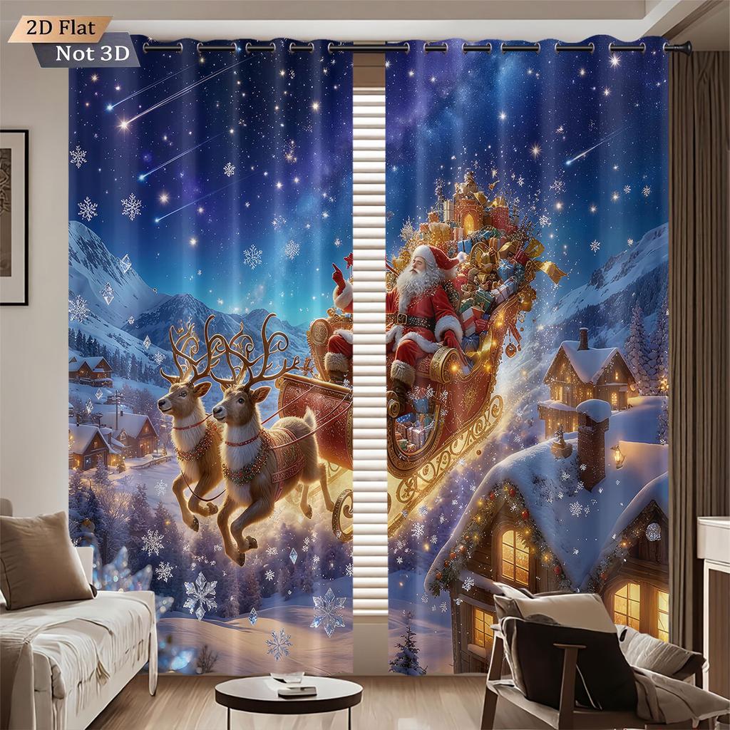 2 Santa Claus Sled Print Perforated Blackout Curtains Multiple Size Living Room Bedroom Insulation Decoration Machine Washable