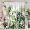 2 szt. - Zasłona z nadrukiem zielonych liści, 100% poliester półprzezroczysty, odpowiednia na zasłony do sypialni i do dekoracji salonu