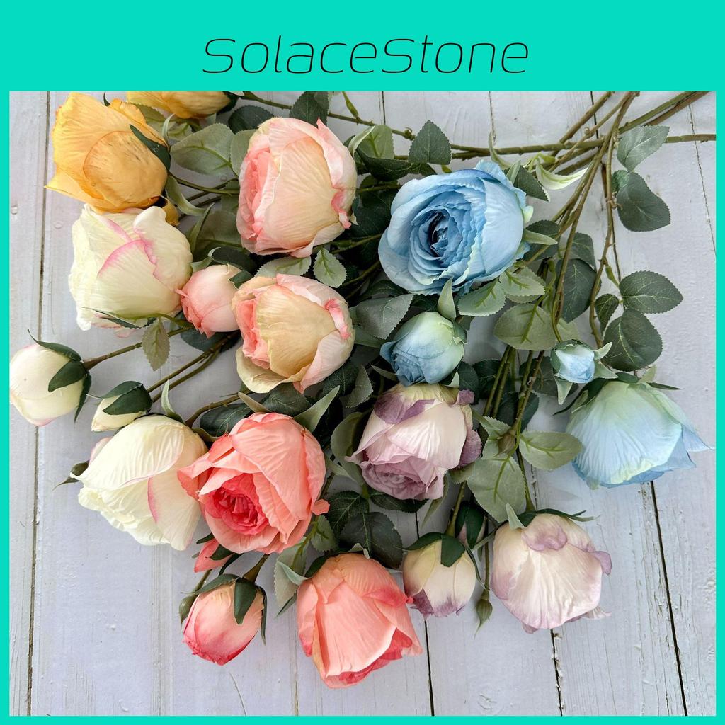 Dostępne w wielu kolorach, w tym kości słoniowej, jasnoróżowym, jasnoniebieskim, lawendowym, jesiennej żółci i głębokim różu, są idealne do tworzenia uroczych kompozycji kwiatowych lub dekoracji akcentujących. Doskonałe do wystroju domu, uroczystości weselnych lub rekwizytów fotograficznych, te sztuczne róże umożliwiają bezproblemową konserwację poprzez proste odkurzanie w razie potrzeby.. Można je umieścić w wazonach lub jako część kompozycji na środek stołu, aby podnieść walory wizualne.. Kwiaty nadają się do użytku w pomieszczeniach, a okresowe czyszczenie zapewnia ich trwałe piękno i żywy wygląd.