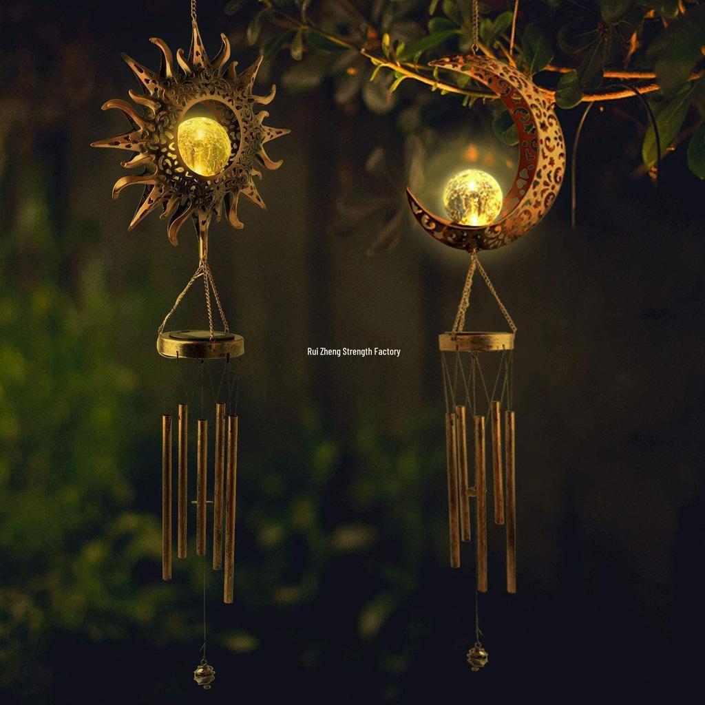 **Kuty Żelazny Solarny Dzwonek Wietrzny - Zewnętrzna Wodoodporna Dekoracja Ogrodu i Balkonu**