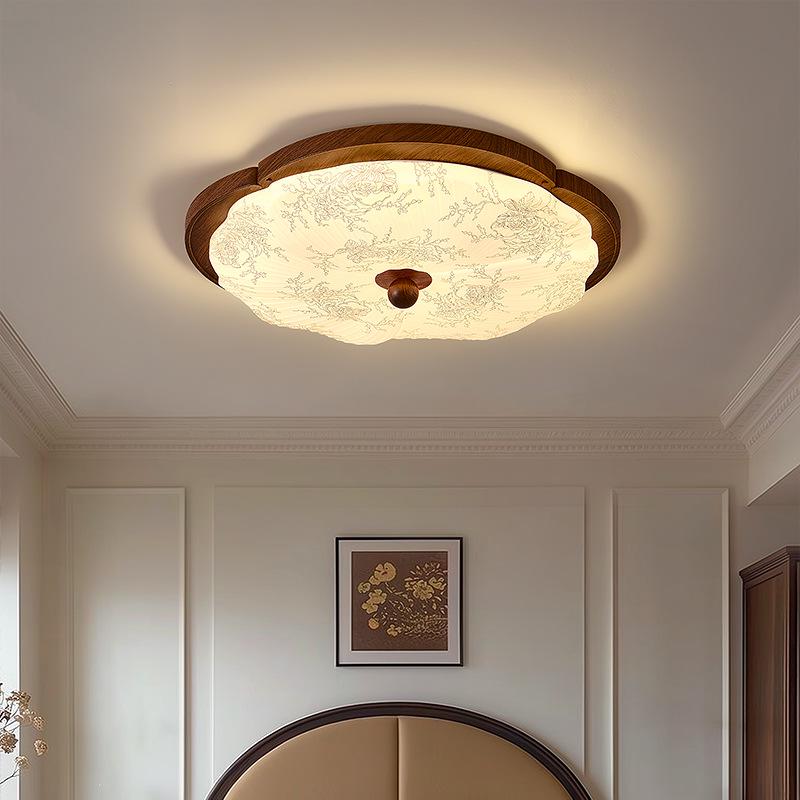 Chinese Style Walnut Wood Grain Ceiling Light for Study or Master Bedroom, Retro Wabi-Sabi Design, Eye Protection