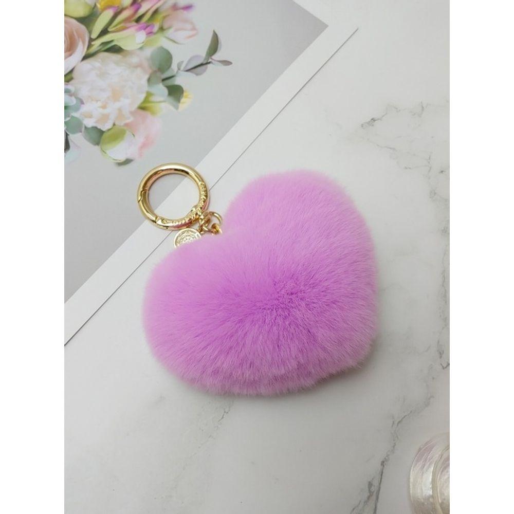 MAIA Rabbit Fur Heart Keychain & Charm - Violet